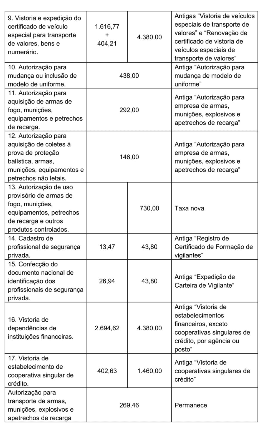 Nota da Brava - Foram incluídos os novos serviços de segurança privada citados acima e definido quais podem utilizar arma de fogo ou armas de menor potencial ofensivo (aguardar regulamento)